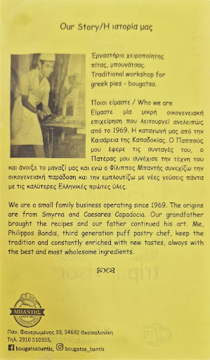 Read moreΣυχνό φαινόμενο ένα στα δύο συνοικιακά μπουγατσοποιεία να αναφέρεται στις κριτικές ως το "καλύτερο της πόλης". Ο καταναλωτής θέλει εν μέρει να έχει ανακαλύψει το κρυμμένο διαμάντι της γειτονιάς, και γενικά ένα αξιόλογο προϊόν με μία δόση υπερβολής μετατρέπεται στο κορυφαίο της κατηγορίας του. Προσπαθώ να είμαι επιφυλακτικός, έχοντας όμως δοκιμάσει τους περισσότερους φημισμένους και μη τεχνίτες θα τολμήσω να πω πως ο Μπαντής δεν αφήνει και πολλά περιθώρια αμφισβήτησης. Ο ίδιος με τους συνεργάτες του διατηρούν χαμηλό προφίλ, αλλά όντας από τους κορυφαίους ο ντόρος είναι φυσικό επακόλουθο. Ύψιστη τεχνική αερόφυλλου με ιστορικές καταβολές, ποιοτικές πρώτες ύλες από δικούς του παραγωγούς, συνταγές που ο Φίλιππος αναπτύσσει, ποικίλο μενού που σποραδικά ανανεώνεται (έξτρα επιλογές τις Κυριακές), δημιουργικότητα, ανταγωνιστικές τιμές, ανθρωποκεντρική εξυπηρέτηση, διαδικτυακή παρουσία, αμφίδρομη ανατροφοδότηση με τους πελάτες και τις κριτικές αυτών, αναφορά από διεθνώς αναγνωρισμένους φορείς γαστρονομίας και συμμετοχή σε σχετικά δρώμενα. Το σημαντικότερο στοιχείο που τους διακρίνει από τον ανταγωνισμό είναι κατ' εμέ το μεράκι, η επιμέλεια και δεξιοτεχνία τόσο στο φύλλο αέρος (λεπτό, τραγανό, με αρκετά layers) όσο και στις γεμίσεις (μαγειρική διεργασία, πχ. κρεμμυδάκι στο σπανάκι, καρυκεύματα και μάλλον σβήσιμο με κρασί στον κιμά κ.α.). Το εν λόγω σε συνδυασμό με το γευστικό αποτέλεσμα και την έλλειψη περιττής λιπαρότητας αποτελεί προσωπική υπογραφή του Φίλιππου και της ομάδας του. Συγχαρητήρια για τη μακροχρόνια πορεία στο χώρο, την ταυτότητα, το σεβασμό στην παράδοση και την τάση για...