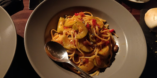 Read moreI didn't eat but i love the place. We stopped at 22.00 a clock to rest after a walk in town and I got impressed by the genius idea of having an black and white movie projected on the big wall in front of the bar. The place is in in a quiet location and the atmosphere is lovely. With trees, and candles and lots of plants around the tables . My new favourite place. I will come for...