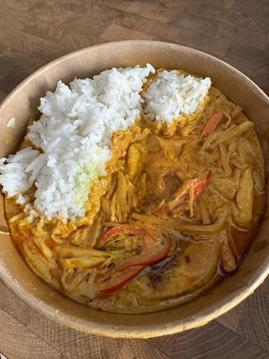Yellow curry with chicken (€12.5) was well cooked, though not much chicken chunks inside and all slim stripes mixed with veggies, the rice was moisture not dry basmati, which is rare in the market, so bravo for the rice and the flavour of curry. However, the packaging was poorly made thus it dripped everywhere on the package and in the bag. To avoid messy situation at home, you must clean it a bit before having it ready to eat.