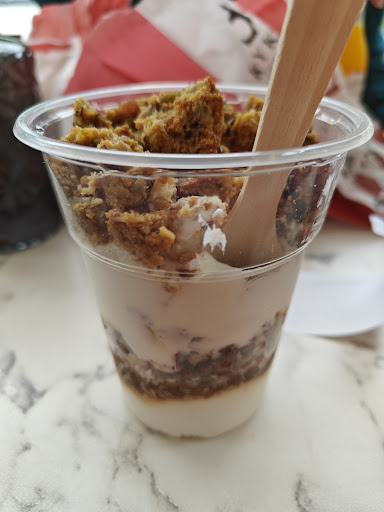 We placed our order with excitement, opting for a delectable combination of aromatic coffee, flaky buns, and creamy yogurt. The barista expertly prepared our coffee, crafting a rich and velvety espresso that promised to invigorate our day. As we settled into a comfortable corner, we marveled at the spot where Koykos was nestled. It was nestled amidst historic buildings, their facades displaying the passage of time and the stories they held within their walls.