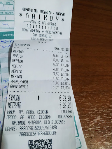 This restaurant is not for tourists. The personal who works there is a layers. First they don't give you menu with prices. I wanted to ordered portion/merida/ of chicken souvlakia and The girl who serving told me that I could not order a portion of chicken skewers and meatballs which is of course cheaper and includes salad, fries, tzatziki, etc., and told me that I had to order them separately each. Then I saw that she served portion/meridas/ to the greek clients. They charge me 33 euro for 3 little chicken souvlakia and for 3 meatballs and of course for separate salad, dzadziki, fried potatoes. It's not acceptable. They divide their customers into tourists and locals and lie to tourists.Shame on you. DEAR TOURISTS DON'T GO TO THIS PLACE. THEY...
