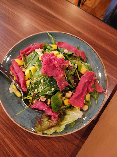 I visited 2 times. The first time it was ok, the second time it was borderline bad. First of all, there are fruit flies inside the store, I don't know why, but I noticed that both times. The salad called "Chevre" was good, but the salad "Arancione" was a disappointment. The mangoes had a hard skin on them, the spinach and arugula were definitely from somewhere prepackaged, and there were huge chunks of them, not cut at all. Also there was hardly any dressing, the only flavorful thing was the Bresaola. For 10€ I expected something more. We got the pizza margherita classico, and I get that it's made in the brick oven and it's supposed to be "charred" but the pizza was burnt at the crust and left a bad taste after. (Are you supposed to not eat it?) The staff was polite, but the music in the store was too loud and out of place. Probably won't...