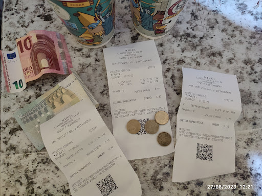 Read moreI ordered 2 Cappuccino mikelo and the lady on the cash register (blonde with bangs) . said that the cost was 5,60€. However on the menu above it was written that one Cappuccino mikelo regular size is 2,30€. So when I asked her about the menu, she only said that it is 0,30€ extra per mikelo. (even so it doesn't sums up... 2,30+0,30+2,30+0,30=5,20!!!) Anyway, I changed my order to 2 freddo Cappuccino. She says the cost is 4,40 € and then she changed it to 4,60€. I asked for the receipt multiple times... And she gives me the 4,40 cost+ 0,10 for environmental responsibility, I say that my chances from the 20€ note is 0,10€ short ( I don't do that, in fact many times I tip, even if it is not required in Greece... But I was quite irritated by the whole transaction...) And she printed another 0,10€ environmental responsibility receipt. When I asked why it is 2 *0,10€ she said one for the 2 tops and one for the 2 paper cups... Hope you had a...