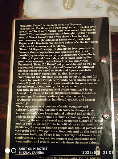 Read moreΠρόκειται για ένα όμορφο καφενεδάκι σε ένα στένο της περιοχής που ντεπώ γεμάτο δένδρα και λουλούδια. Η γειτονιά είναι πολύ ήσυχη. Η ατμόσφαιρα λόγω της πλούσιας βλάστησης στην περιοχή σε κάνει να νιώθεις σαν να βρίσκεσαι κάπου στην επαρχία και σε ταξιδεύει σε μια άλλη εποχή, αρκετά χρόνια πίσω όπου τα καταστήματα ήταν έτσι απλά και όμορφα, χωρίς φανφάρες, ούτε τυποποίησμους όπου στην προσπάθεια τους να ξεχωρίσουν με το στυλ τους πλέον δείχνουν όλα ίδια. Έχει αρκετή δροσιά ακόμα και τους καλοκαιρινούς μήνες. Το κατάστημα προσφέρει αρκετά μεγάλη ποικιλία σε ροφήματα τύπου, καφέ, λεμονάδα, κανελάδα, τσάι, κλπ. αλλά και μικρούς μεζέδες για όποιον θέλει να τα συνδυάσει με ένα ποτήρι ρακόμελο. Μου έκανε εντύπωση που στον κατάλογο αναφέρονταν η προέλευση όλων των πρώτων υλών που χρησιμοποιεί το κατάστημα και των προμηθευτών τους. Οι τιμές ήταν στα επίπεδα και άλλων καταστημάτων, ίσως λίγο παρακάτω σε κάποια προϊόντα, με τα ροφήματα να κυμαίνονται μεταξύ 3.5 και 4.5€ και τα μεζεδάκια 4-8€ ανάλογα αν είχαν και κρέας ή όχι. Ο εργαζόμενος στην εξυπηρέτηση αν και νέος ήταν πάρα πολύ ευγενικός και εξυπηρετικός. Η παραγγελία μας άργησε λίγο αλλά στα πλαίσια του λογικού. Το μπάνιο ήταν...