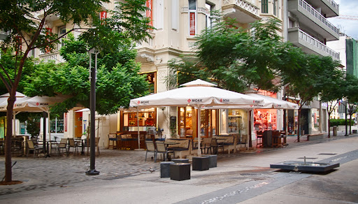 This is a tastefull place in the center of agias sofia street which happens to be a cetral place for coffee drinks and shopping. You can enjoy your drink inside surrounded by the nice woden interior and the confortable chairs or outside enjoying the nicely constructed sidewalk. The church around thw corner happens to be smaller replica of the famous agia sofia church in instabul. Pricing is typical...