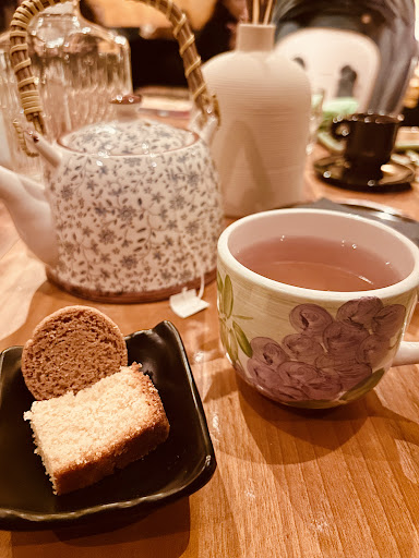 Το bar βρίσκεται στην οδό Λαμπράκη σε κεντρικό σημείο της Τούμπας. Στον κάτω όροφο έχει έναν πολύ όμορφο χώρο σαν στοά (δεν ξέρω αν είναι ανοιχτός και τον χειμώνα) που είναι γεμάτος λουλούδια και λάμπες σαν bamboo που κρέμονται από ψηλά που σε παραπέμπει σε εξοχή/ αυλή. Στον πάνω όροφο επίσης ο χώρος είναι κλειστός, πολύ όμορφα διακοσμημένος με αναπαυτικές καρέκλες τύπου πολυθρόνα, όμορφα τραπέζια και άνθη. Στο κέντρο που τραπεζιού υπήρχε και κουμπί μέσω του οποίου μπορούσες να καλέσεις τον/ την σερβιτόρο ώστε να μην ψάχνεις. Οι τιμές ήταν λογικές και η ποσότητα του τσαγιού υπεραρκετή καθώς το φέρνουν μέσα σε ολόκληρη κανάτα. Αυτό μου άρεσε πάρα πολύ γιατί σε άλλα καταστήματα που έχει τυχει να πάω, σου υπερχρεώνουν μια κούπα με ζεστό νερό που τζάμπα είναι από την μηχανή του καφέ και απλά βάζουν ένα σακουλάκι τσαγιού δίπλα για να το προσθέσεις στην κούπα μόνος σου. Επίσης, είχε και live μουσική με σαξόφωνο Κυριακή απόγευμα προς βράδυ που πήγαμε και η τραγουδίστρια που συνόδευε τον μουσικό, είχε πολύ ωραία φωνή. Η εργαζόμενοι στην εξυπηρέτηση ήταν ευγενικοί, γρήγοροι και εξυπηρετικοί. Το κατάστημα και το μπάνιο ήταν καθαρό. Μόνο πρόβλημα είναι ότι ο χώρος του μπάνιου δεν έχει κάποιον προ-διάδρομο με αποτέλεσμα όταν χτυπούσες να δεις αν είναι κάποιος μέσα για να μπεις, να μην ακούγεται λόγω της μουσικής και ενδεχομένως να ξανά χτυπούσες με κίνδυνο να ενοχληθεί όποιος είναι μέσα. Αυτό θα μπορούσε πχ να λυθεί με κάποιο καρτελάκι που να αλλάζει πλευρά εξωτερικά και να υποδεικνύει εάν είναι...