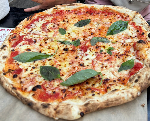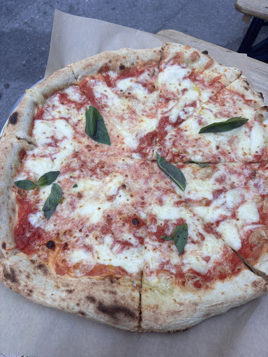 Really delicious pizza! They offer two sizes – the larger one is perfect for sharing between two people or for taking half of it to go. Prices are reasonable. The dough is excellent: thin in the middle with a thick, fluffy crust! You can choose between red, white, or yellow sauce, which adds a nice variety.