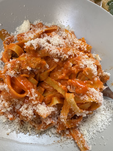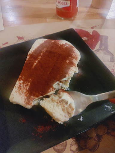 Parmegiana Melanzane, melting pappardelle stuffed fresh pasta with ricotta, chestnuts, butter, sage and white wine sauce, an Arancini Soda, a Tiramisu that I polished off way too quickly and a loud ambience with people talking in Greek and Italian that's reminiscent of my days in Italy.