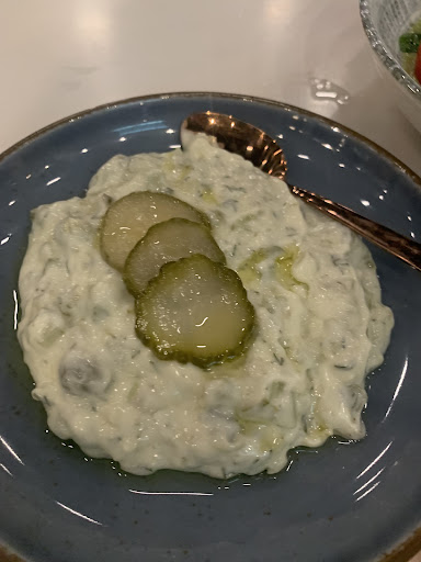 1/The rocket salad we ordered was served with quinoa, good flavour but there was more quinoa than rocket, it would be more refreshing if it’s served in opposite way. 2/Funny fact is that we also ordered a “wasabi tartar salad”, yet it appears to be tzatziki the time it’s served (as shown in my first photo). 3/We ordered beef liver and ribeye beef stake as main dishes; the flavour of liver was excellent, I’ll say the best grilled liver in toumpa among all that I have tried so far; the ribeye was well cooked as tender as we expected. However, there was too much salt on the stake and some parts covered in butter dressing, it would be better if salt and dressing can be served separately as additional options.