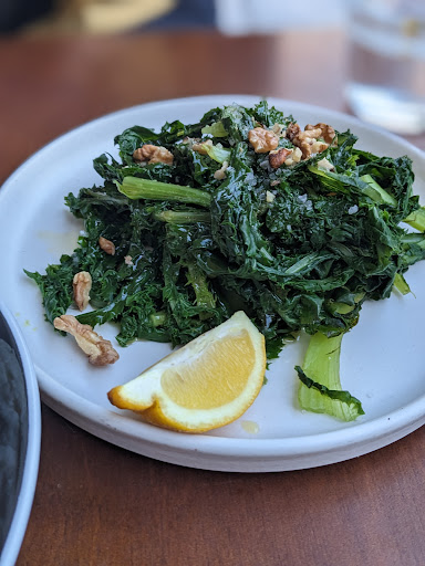 The fried olives and oranges were a great start followed by some Cretan salad (tomatoes, capers, and fresh soft mizithra cheese). The wild greens and fava paste were also really good, served with some freshly toasted sourdough bread and olive oil.