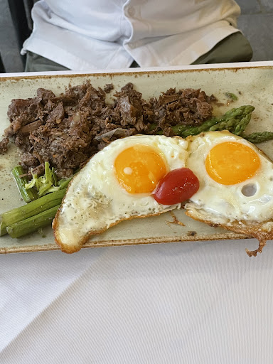 The restaurant looked nice at first glance. We chose this place because our guide recommended it to us. But to everyone who choses a restaurant based of Google Maps I really wouldn't advise a visit of this place. We've had Bougiordi-Pies, Mashed eggplants, the Lamb-Pork Kebab, the "Traditional" minced beef and the Burger. The Bougiordi-Pies were quite well made. 5.5/10 The Mashed Eggplants were good. 7/10 The meat dishes although we're terrible. We've had the impression that the first time the meat has seen fresh air was at our plate. The taste and consistency of the meat were disgusting. But the buns of the burger were tasty. 0/10 The interior was okay. But the toilet was dirty. The staff wasn't very attentive and they didn't care about our complaints. We've had the Impression that they don't know their own menu. All in all I'd recommend this...