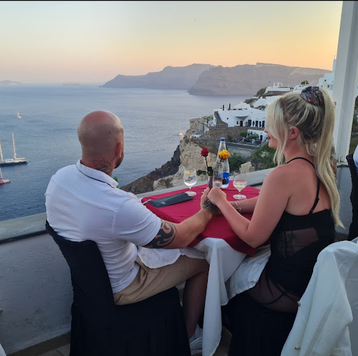 A warm welcome by friendly staff. Nice. A great setting and view over the famous Oia cave houses and cliff. Great. Good wine list and we had a good local wine. The food, however, was surprisingly very disappointing. Even more so disappointing as the food is very pricey. This place has lost its mojo. The new management has a long way to go!