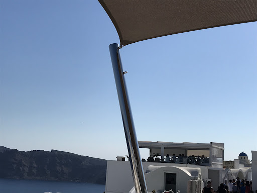 You’re able to see everything because of how the top level peeks out of the hillside. Not only does this place have a 218 degree view of Oia, the prices are amazing, the food was very good and the staff was very pleasant.