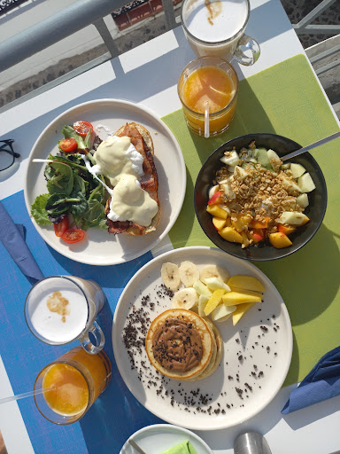 The total bill was €47,50 which is the cheapest we have tried at Santorini for a café with sea view. The food was great, almost perfect besides small details as the bit overcooked eggs and some of the fruits (apple and mango) was a bit dry. Everything else was really good! Compared to a hotel restaurant nearby, where you double up the bill for the same menu, it was almost the same standard.