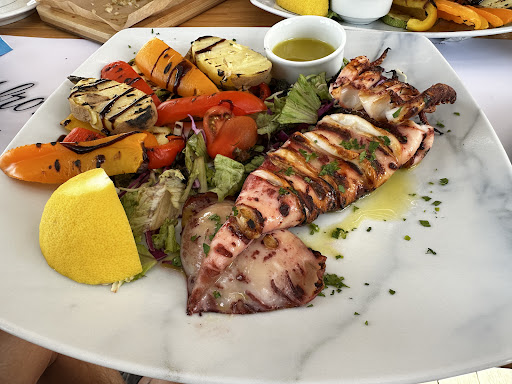 Read moreLovely staff and good food. We ordered the lamb chops which came with potato fries (19euros) and grilled jumbo Shrimps (22 euros) between 2 people. The big Shrimps were sweet and juicy. The grilled courgettes were also so tasty - I know it's not the main part but I didn't think courgettes can taste this good! The lamb chops were a bit on the fatty side which I don't mind because I like that but I know some people may be put off by it. I personally thought it was juicy and the portion was big and super filling for a a me, a (65kg female) but for anyone bigger definitley get a side too. It was slightly cheaper compared to the other restaurants along the beach so we were ok...