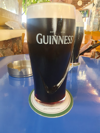 Read moreFirst and foremost...DRAFT GUINESS!!! 😆 although it's almost double UK price!! Table service only. Nice little extras like a small jar of mixed nuts on the table. A small Irish coffee when you settle up. Those little details that add up.. food menu is a good mix of Greek and UK / irish, including an Irish brekkie, and average local prices. Nice touch is they show UK and Irish sports on half a dozen screens. It's sheltered and shaded with plenty of misting fans adding to the cooling effect. Found this place after only 3 hours off the plane and ended up back there twice on day 1. (Today is day 2 ( 20.6.23) great atmosphere. I have no doubt we'll spend plenty more hours here before we leave. £25 - £30 for the 2 of us. 2 drinks each.. not tried the food yet.. update and...