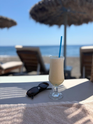 If you wanna have the best pina colada on the island 🍹🍍🥥, you should definitely go here! I tried many other places, but none were as close or as tasty as this. The hot dogs were amazing too perfect for a quick, delicious snack. The staff were so friendly and nice, always smiling and making you feel welcome. Vasilis at the front gave great service and always made sure we had everything we needed. The atmosphere is super relaxing, with comfortable beds right by the beach where you can unwind and soak up the sun. The place is clean and well kept. Prices are fair for such great quality and service. I had a fantastic time and can’t wait...