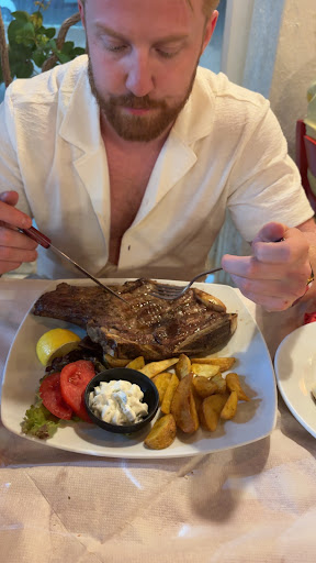 Read moreWas given bread and water on being seated, that came out instantly, but was charged for it at the end without them making it clear in the beginning. But was given free dessert for the kids, ice cream but enough watermelon that we all shared it. There is a paid car park right in front €8 for 4 hours and closes at 10pm but the guy in the restaurant said he has a key if needed to let us out if it goes past 10pm.
