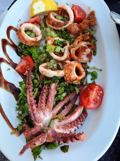Nice guy in front of the restaurant that we gave our trust as he seemed trustworthy (which is really challenging in such a touristic place)... nice seafront table, kind of relaxing vibes... unfortunately, it didn't work out as hoped... the local white wine recommandation was great, the garlic bread was great, the fava was ok, but the fish platter for 2 was our worst nightmare, unfortunately... the entire fish was ok, but just 1 lemon, ok, no sauce ok, but the rest was the worst we ate in 2 weeks in Santorini (and where ever we usually eat), overgrilled, overspiced, eventually not fresh, but the worst was the calamari - we had explained that we are scared of hard and chewy as there is a 50:50 chance depending on the capability of the cook - he convinced us, and they even changed from grilled to fried as this should be better... it wasn't - complaint taken, it resulted in 'another try', now more fried and more spiced, but still horrible, and even parts 'of the first try' "recycled" in the second, disgusting (in our country the health organization wouldn't even allow such 'experiments'...) - we did our best, ate some of the platter to fill our hungry stomachs, but couldn't even balance the bad taste with the good wine... there was understanding, but neither a distestif nor discount or compensation for this expensive nightmare... :( I can only say: look for local small businesses like in Monolithos, and avoid the touristic scam that is ruining that beautiful island...
