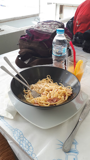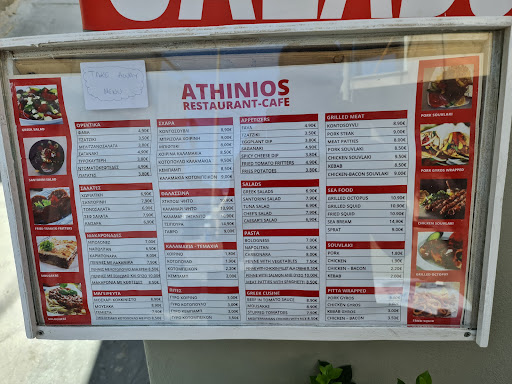 Anyways, Athinios Restaurant is a family business run by a couple of nice ladies and you are served by the youngest one who looks to be the daughter, Elisabeth, who is really nice. The food is good, they have a coal grill where they cook meat for gyros and other meat, they also have several other options such as salads, fish or local food such as mussaka or fava. We tried the roasted pork which was tasty, slightly dry as we popped up there in the middle of lunch and dinner (4:30 pm), but was still good, their tzatziki is good enough as well as their pita bread. They also have decent selection of local beers like Mythos and Alfa. Prices are good considering the other options at the port. They also have a terrace with tables to eat outside where you can enjoy the breeze without looking at the crowds in the port. Overall, I recommend it and I hope everything goes well for them. I will come back on my next time...