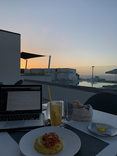 This restaurant is located at Myst Boutique Hotel. The first highlight are the cocktails. Not only they well crafted but the Signature drink , Green Ginger is a must try. I also had perfect Old Fashions prepared here. The food is high quality and offers variations of classic greek dishes with a modern twist. Santorinian Fava with Octopus is my entry recommendation, and combined with their trendy Risottos and Meat (I had an outstanding Pork tenderloin) make it a very comfortable and enjoyable experience. For dessert, Chocolate Tarte closes the meal in the same tone. This Hotel and restaurant are brand news, and the beautiful pool view makes a great experience on the sunset. If I had a small constructive criticism it would be regarding the restaurant decor. It is a really clean look, but deserves to be more romantic and cozy. Some lanterns, plants, candles and a heater would be nicer. Even with this, a...