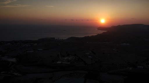 The view shows an imposant villa, in the lower part of a huge field of growing grapes / tomato or what erver the other huge area of farming fields consist of. We saw a huge sailing boat on the sea beside the southern part of the island and of course in front of us the sunset. The sun goes down directly into the sea in june (hint: there is a period before june and before august when it goes down behind the part of the island with the lighthouse) but the colours which apear are worth it anyway. Spending an hour at this beautiful place will make the most of this...