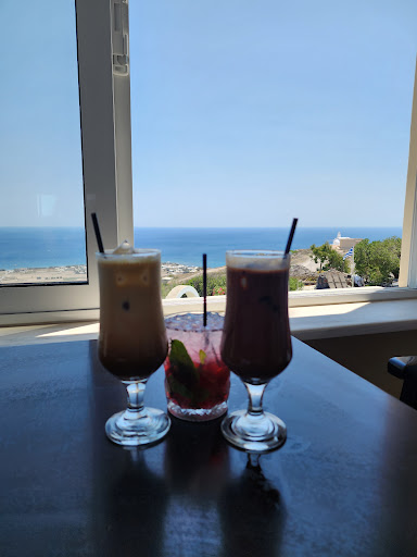 Read moreThe view! The view and the view! Nice music. Great place to just chill out and watch the sunset. They also open during the day for lunch and snacks. The place is very comfy. Friendly staff. Lactose free options are available. Reasonable prices. Hints: There are beautiful archeological sites on the way when you walk up to the Cafe and some windmills where you can stop taking...