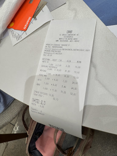 • Service & Atmosphere: The waiter made us feel uncomfortable, particularly after learning where we were from. One member of our group felt singled out for not ordering a Greek dish, which was unsettling. The waitress at the end was openly rude about us paying by card, which added to the overall discomfort. • Food & Portions: While the food itself was pleasant in parts, 2 out of 4 dishes arrived with noticeably small portions. The calamari, in particular, was a letdown—lacking the freshness and flavor of any other seafood we tried in Santorini. The promised “free wine” was served warm, which was disappointing. Two of our additional orders—drinks and sides—never arrived. • Crepes & Promises: The crepes offered at the door turned out to be just one shared between us, with no consultation on ingredients—an oversight that could have been dangerous for anyone with allergies.