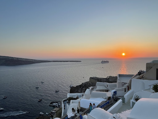 We were surprised this restaurant with really nice sunset views was half empty during prime sunset time but now understand why. There is a 50 EUR per person minimum that excludes alcohol and the food is very mediocre - seafood all tasted frozen/not fresh (which to be fair they do state on their menu their food is âfresh frozenâ)