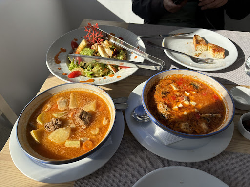 Two things really set this restaurant apart: The staff are so friendly and passionate about what they do. They really appreciate compliments and they go way out of their way to make sure you have the best experience possible. For example, we received a small digestive liqueur as an after dinner gift and our waitress remember from THE DAY BEFORE that we had asked for nom alcoholic beers and she came over to ask if we'd prefer something without alcohol. We were touched by that. And The olive oil they put on the table with the bread is incredible. We spoke to one of the staff members who told us they press the oil from their own trees. Absolutely incredible.