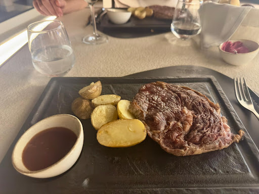 What truly elevates the experience, however, is the setting. Perched above the caldera, the view is nothing short of breathtaking. Watching the sun slowly dip into the sea while enjoying our meal was magical — a moment we’ll remember forever. The ambiance is elegant yet relaxed, making it perfect for a romantic evening or a special celebration.