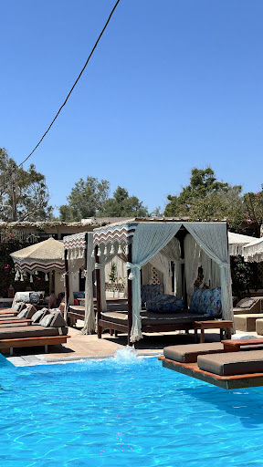 Read moreWe visited the pool area, which is beautifully designed. It was a Monday morning and we paid minimum spent 30€ per person (2 people) which is totally acceptable, but my question is: How do you expect us to have a 60€ bill minimum, when the waitress doesn’t show up to the table to take our order? Almost every time we had to get up and go to the bar to find her, she was smoking her iqos in front of the pool and didn’t pay attention to the customers. We had to ask her to take the coffee glasses when she brought the beers. We had like 8 beers and 2 cocktails they didn’t bring us any chips or something (I know there is food on the menu but some nuts are not too much for 10 drinks). The absolute worst part was the women’s bathroom : I haven’t seen a more disgusting and stinky bathroom. The toilet cap was broken, used papers all over the floor, sand and mud on the floor, nobody cleaned the toilets in the 5.30 hours that we were there. I think it’s ironic to note on the menu that the tips are optional with this kind of service. Overall, we had a good experience with the music and the pool, but service...