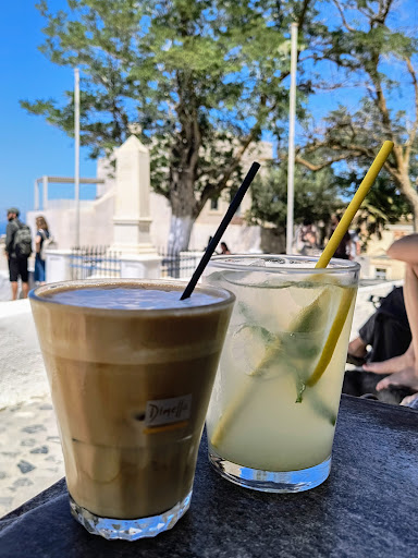 Amazing place to relax with a drink. Not many tables but we were lucky to get one by the door in the shade (after wandering round in the hot sun) I had an iced latte which looked very impressive when it arrived. Happy to say it tasted as good as it looked! Very good strength of coffee, icy cold, and great foamy milk layer on top. My wife had the homemade lemonade which she also enjoyed. Nice clean toilet inside. The women working there were really friendly, and will definitely go back for another coffee before leaving Santorini