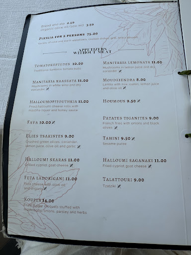 Read moreReally nice restaurant in Oia! It was recommended to us from our hotel and we were happy we went. It wasn’t crowded at all, it’s a little off to the side from the main area which can be a nice escape from the crowds. We got the Kyprida Salad, Koopes, Koupepia, and the fresh fish with vegetables (sea bream). The salad was absolutely delicious, and she kindly added tomatoes on it because I was hoping to have them included. The dressing was really nice. Highly recommend the salad, it’s not your typical plain salad. The Koopes were really tasty, nice texture and crunch from the outside shell compared to the soft center. The Koupepia were good, but we liked the Koopes more. The fish was really delicious and cooked perfectly, it came served wrapped in parchment paper. It was a beautiful presentation. Really kind service and overall...