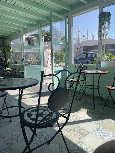 This is the perfect place for a small bite, refreshment and shade away from the sun to catch a nice breeze from the air. We ordered 2 smoothies, I ordered the tropical one, which was my go to smoothies for the rest of my time in Santorini and the other order was a ginger and carrot with other ingredients. Both were very delicious and refreshing, the perfect and healthy boost after exploring the local town. The smoothies were €2 cheaper each than Oia and Thira. The staff were very friendly and helpful on what they have to offer. The atmosphere of the place was so lovely and sweet, as if sitting in a garden with the...