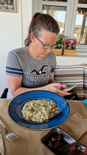 Read moreWow... saving the best for last after 1 week in santorini. We heard about this place because alot of locals go to it. Best food we have had. Starters battered tomatoes. And I had chicken and feta sauce with chips and my wife had the mushroom risotto. And the complimentary broken biscuits cake for dessert. View of the monastery which is the highest point of Santorini. Amended to say they close in the peak summer fyi. And I had a 500ml beer and my wife a 500ml jug of white wine.. all...