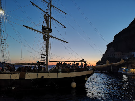 Location: best in the evening, get a table near the water to see the lights of fira above. Its very quiet in the evening far away from busy fira streets.. only the sound of water and live greek music in the background. The lights are dimmed, not very bright so it is best for a romantic dinner date.