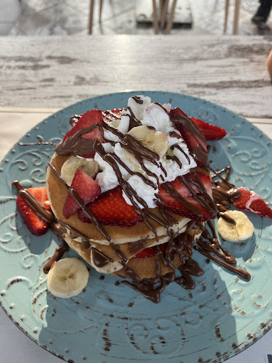My wife and I traveled to Santorini in May 2022. This restaurant was just around the corner from us and opened at 7:00 AM and since I’m an early bird I visited it on three occasions. The two owners were super friendly each time and speak really good English. The coffee was great each visit I just wish it had been a bit hotter. On my second visit I ordered 4.1 which is their chicken breast omelet. It was served with fresh bread and a small salad with vinigarette dressing. The omelette was cooked perfectly and tasted great. I enjoy onions but if you don’t let them know to leave them off the omelette. I also ordered their pancakes with Nutella. WOW it was great! Tasted wonderful and I recommend you have them add maple syrup to top it off. I will miss my pleasant mornings in Santorini and I’m thankful to have found this place! And yes it’s a bit expensive compared to the US but it’s worth it...