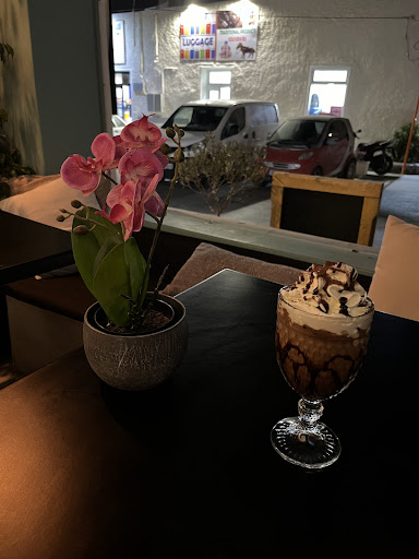 Their hot coffees are not bad, but way overpriced for a non-specialty coffee place. Neither the ambience (sports bar/hookah place), nor the rent (no view of caldera, just a boring street corner), nor the coffee origin (illy) justify such high cost (4.50 EUR for a double shot cappuccino).