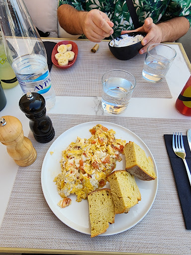 Read moreWe had a lovely late morning breakfast here consisting of yogurt with granola and honey as well as an egg and feta and tomato omelet. We were served by John who was very attentive and made sure we were well taken care of during our entire meal, often looking over to check if we were alright and rushing if something small was amiss, such as an empty water bottle falling over in the breeze. We finished our meal with a scoop of ice cream, a fantastic ending. Overall, we had a great experience here and will definitely be...