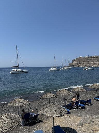The food was good- we just chose what the waitress suggested, plus the fava dish because I can’t get enough of that. This is a family run business- while showing the fresh fish of the day, the waitress introduced me to her mother who does the cooking. It was a -little- more pricy than I expected but still a good value- the quality and quantity are great. The bread was soft and fresh. The Greek salad was nice and dominated by sliced cherry-sized tomatoes. The cold eggplant was refreshing, and the fresh fish served over a pile of fries was as you’d expect from a fresh grilled fish- awesome. We had walked to this beach from the Akrotiri excavation site- a long and arduous hike along goat paths through the mountain- and the ice cold beers we got on the patio here REALLY saved the day. After lunch we relaxed on the beach for a few hours and then the waitress was kind em enough to help call for a ride back to Perissa Beach. Great people...