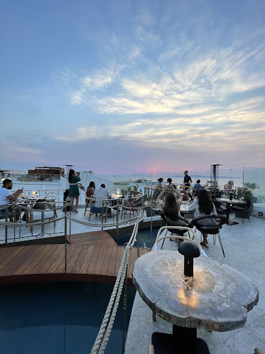 Read morePretentious place with staff talking down on you. We were group of 4 wanting to have drinks after dinner. As soon as we entered the guy at the entrance had a bit of stuck up attitude. We got a table upstairs on the roof. The girl who escorted us upstairs was very pleasant. Hence, we decided to overlook the attitude of the first guy. Our waiter was a tall guy with short hair, he was pleasant but not overly friendly. The decoration was nice as you can see from the picture. It was airy, spacious place. Definitely beautiful at sunset I’m sure. Unfortunately, there was a short/medium height waiter with greying hair who ruined our whole experience. He was walking past out table (mind you he wasn’t even our waiter), we ordered the same drinks again and he just rolled his eyes and made a frowning smirk as if we were not good enough to be there or have his attention. He came back with the drinks but it tasted differently, so we asked if it is the same alcohol as the one we have ordered the first time around. He straight away said ‘As you can see around the restaurant we provide best service and take great care of our customers. You’re very safe here, there is no need to worry!’ He literally made us feel unwelcome and looked down on us. As if we can’t afford the place. It’s extremely sad how some staff think just because they work at somewhat decent place, they act as if they own the place! Absolutely disgusting! Shallow minded people like him should not be in a service industry! Sadly I didn’t see that a lot of people complained about the service before I went...