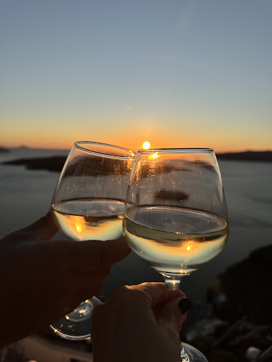We booked a table and arrived around 5:15 pm. From the very first moment until the end of the evening, everything was flawless: excellent and attentive service, delicious food, wonderful local wine, and a warm, cozy atmosphere. As the sun began to set over the caldera, time seemed to stop — nothing else mattered except the beauty in front of us.