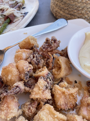 The food was okay, nothing special, a bit disappointed compared to other Greek restaurants we experienced in Athens and Santorini. And they have a mixed Italian/greek/fastfood style menu. What really annoys me was the rude waiter, we had lunch for 50 Euro and tipped him 4 as well, he didn't even say thank you (at least I didn't hear it and it was also weird that he came to collect the bill, yet a nice waitress served us mostly and we wanted to tip HER, not HIM) and then when I asked why a review 2 months ago saying the sunbeds are free for customers, he just said everyone had to pay 15 Euro (Seriously, in total we paid 69 euro for food/service during lunch time and we have to pay extra 15 for the sunbeds which are mostly free for customers in other restaurants) This is kinda ridiculous. Especially when I saw the owner even replied to someone who claims the sunbeds are free. I'm extremely suspicious if he tried to fool us. Very bad experience. We wanted to go to another restaurant and my friend thought this is the one by mistake. Oh well, it is...