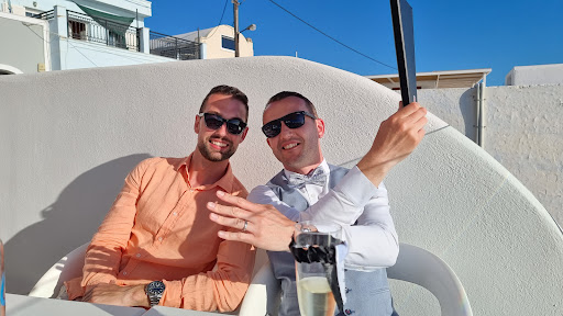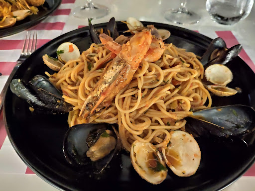 Read moreMy wife and I chose this restaurant because some reviews mentioned that the owner’s son was caeliac, so they were very conscientious and had many GF options. We didn’t book in advance because while on vacation, we don’t like to restrict ourselves to a schedule. There were several empty tables in the sheltered area below and in the glass enclosed area on the right. We were only offered one of 3 tables at the back on top, without wind shelter (it can get very windy and cool around sunset). The wait staff seemed very indifferent - very cool. They would be better suited to working a nightclub. When you spend decent $$$ for a meal, you should expect to receive warm hospitality. We are a polite, fit, well-dressed couple. When asked about gluten-free options, the waiter pointed out two items. They had many pasta dishes including a seafood dish, so I asked about GF pasta, first waiter said he’d check, but never returned. The 2nd waiter told us no. When we asked about the risotto, he said he could not guarantee that it was GF. Gave us a strong warning that we would be eating at our own risk. The sheltered empty tables were still vacant when we left. Definitely some kind of bias going on here, as an older couple that had been checking menus along the way ventured in after us and were seated below in the sheltered area. The good part: food was good, the sunset view amazing (same as our hotel balcony), they offered blankets for the cold, and gave us melon liqueur. The bad part: We should have left as soon we were seated - bad vibes...