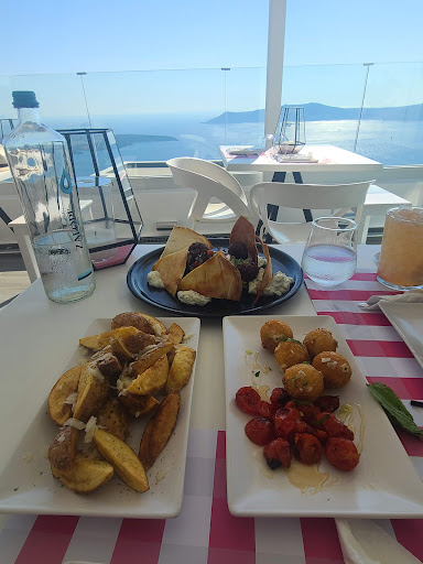 Onar was hands-down my favorite dining experience on the island. Set in beautiful Firostefani, it offers a truly spectacular view of the Caldera—an absolutely gorgeous backdrop, especially at sunset. The atmosphere strikes a perfect balance of modern elegance and relaxed comfort, ideal for a special evening out.