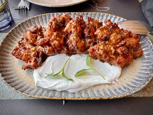 We feel so lucky to have been directed to try Sanafi. This was one of the best meals we’ve had on our two months trip through Greece and Italy! The meal was clearly made with the freshest ingredients, indeed they use many ingredients they grow themselves. I could go on about each course we had but I don’t have enough room. Tomato fritters (you’ve never had them like these!), white eggplant (melted in our mouth), taramasalata that was the best I’ve ever tasted, chicken with orzo. And then Ice cream, with little baklava like treats. And if the food wasn’t enough the service made us feel like we were eating at home. Our waiter Kostas talked us through every option so we understood the course and even some of the history. I think every one of the wait staff stopped by at some point as we enjoyed a leisurely meal in the most amazing of settings. We’re short on photos because we were so excited about the food! Always...