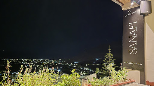 Read moreWe had a fantastic evening at Sanafi, having booked in advance from the UK for our first night dinner in Exo Gonia, Santorini. The food was exquisite - so flavoursome (dalmades, lamb special and zucchini risotto with house red) and the view across the bay was superb - what a wonderful setting for our meal. Our waiter, Kostas couldn't have been more attentive, without being intrusive. He made superb food recommendations and is clearly passionate about the menu and in providing a professional & extremely courteous service. If you visit Santorini this has to be on your list of...