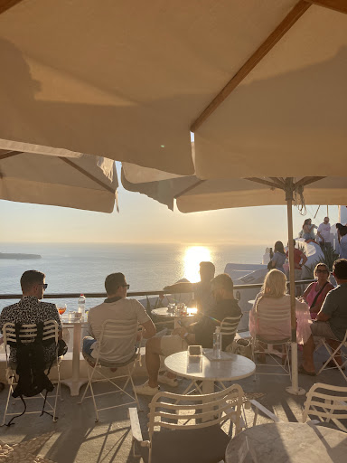 Read moreThis is the place to go to for the perfect sunset view, as you can watch the sun disappear in front of you without having to fight for a good spot in the crowd. You'll need to book a table, as it's very busy at sunset time, and they normally ask for a minimum 25 euros spend- which you easily spend anyway, as cocktails are 16/18 euros each. They have some food options too - I saw some cheese platters going around. Totally worth it if you want to treat yourself to the perfect Oia sunset, with a nice cocktail and literally one of the most beautiful views in the world. You can also walk few steps from your table and get the perfect windmill sunset pictures, which look like the Greek postcards you find in the shops. Challenging to get there in the crowd, as the narrow streets get very busy, and google maps doesn't really manage to guide you through the turns and steps down you have to take to reach it. Look at the windmill once you're near the location, as it's right there. It's very warm, as the bar is completely exposed to the sun setting, so wear...