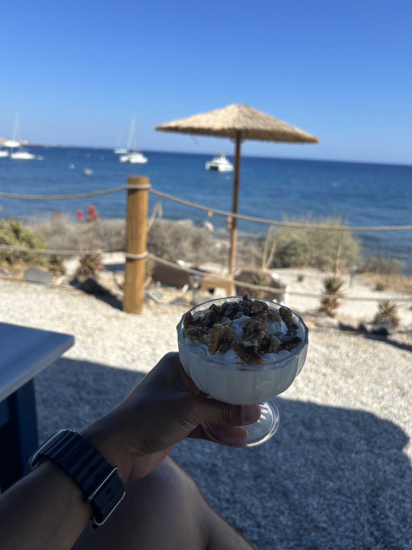 A charming beach styled restaurant at a superb place. They have plenty of parking and are located very close to red beach which is easy to find. They also have an extra sitting just by the sea. Food was good. We tried spinach and feta cheese pie. Both of them were tasty. We also tried their chicken gyros in pita bread and lamb-biff kebab in pitta breads. Their gyros were outstanding. Pitta bread had a crispy texture and was chewy. Their food is cheap, compared to most other restaurants on the island. Gyros/kebab in pitta bread costs only 4 euros, amazing. Restaurant staff were friendly and toilet was also clean. The only thing I did not like is that you have to pay extra for extra sauce on your food. We have been there twice in our 5...